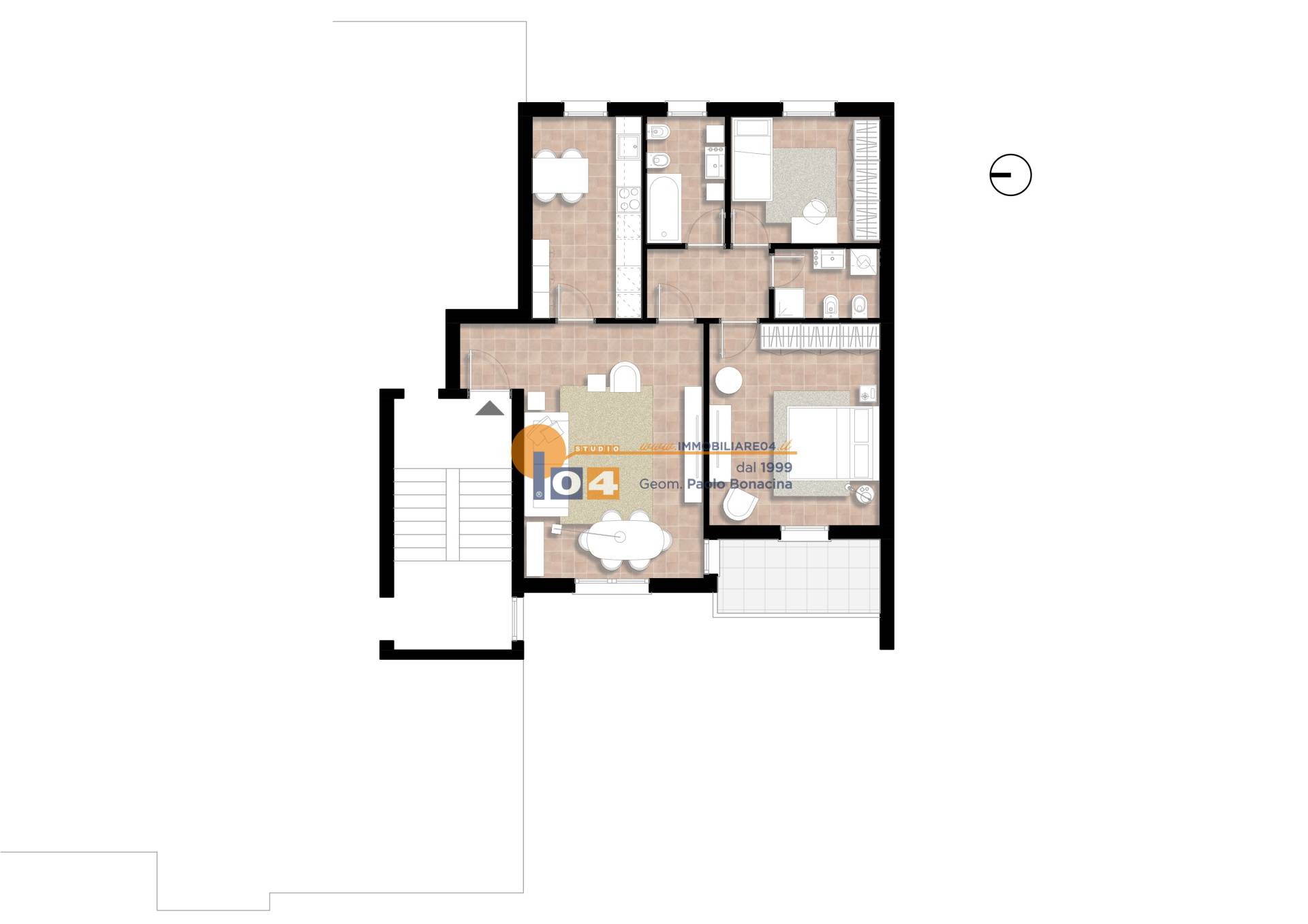 L’ingresso si apre su un ampio e luminoso soggiorno open space‚ perfettamente integrato con una cucina abitabile che coniuga praticità e convivialità. La zona notte ospita una spaziosa camera matrimoniale‚ una seconda camera dalle ottime dimensioni‚ doppi servizi e un comodo terrazzino di ca. 10 mq‚ perfetto per momenti di relax all’aria aperta.