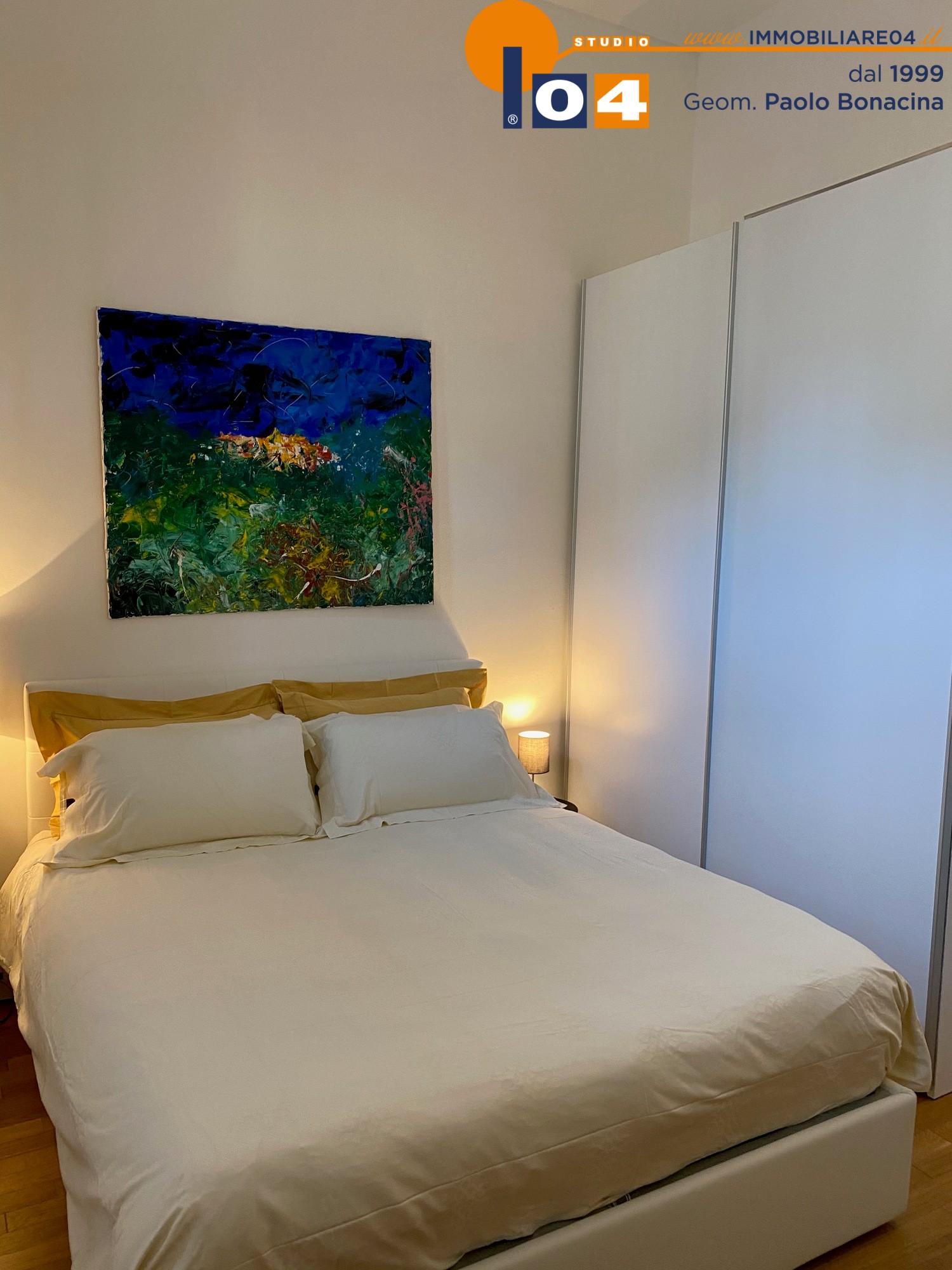 Luminosa zona living con cucina a vista su misura‚ disimpegno attrezzato ad uso ripostiglio‚ ampia camera da letto matrimoniale‚ bagno moderno con sanitari sospesi e box doccia. L’appartamento è rifinito con un arredamento contemporaneo di gusto e materiali di alto livello.