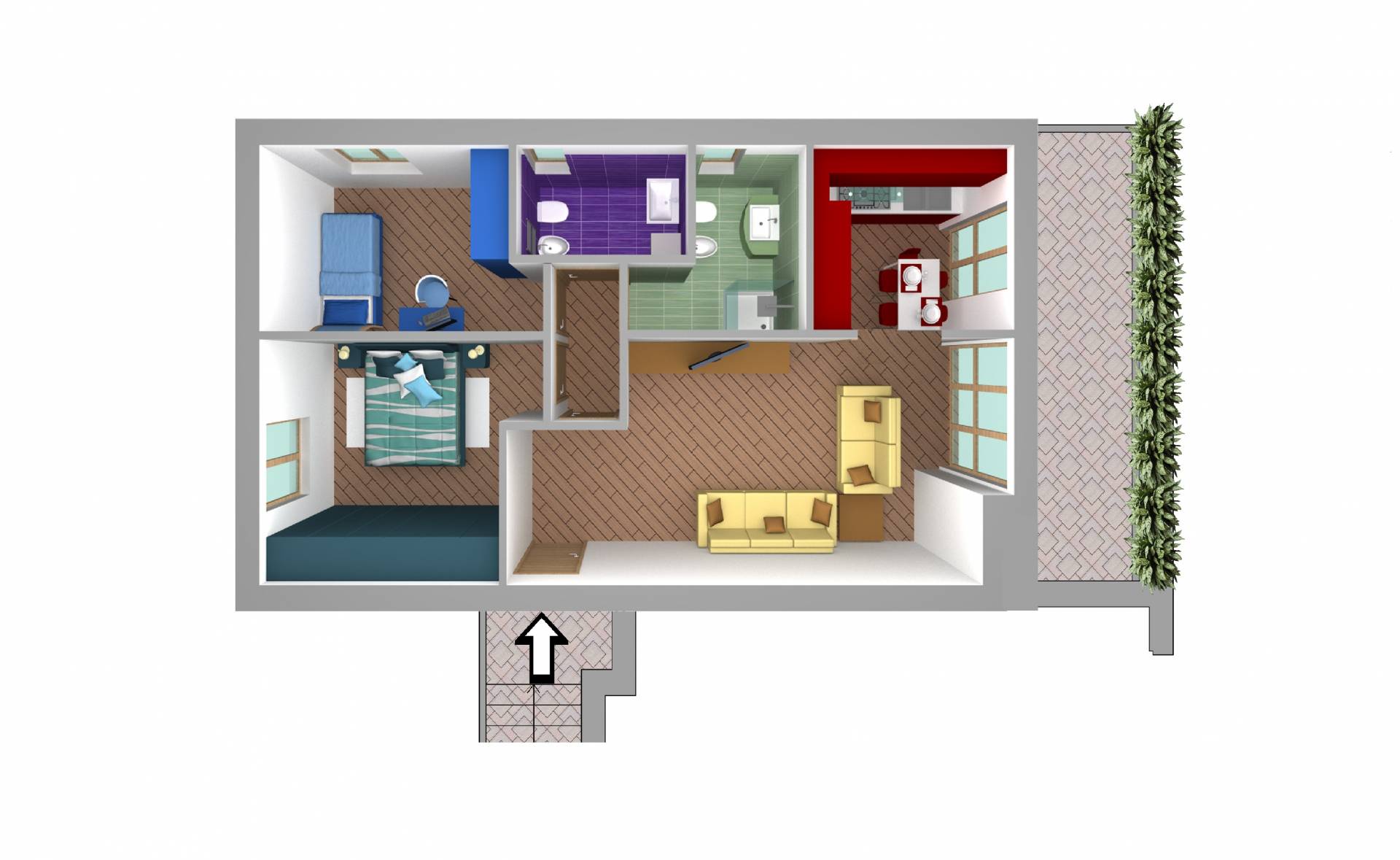 L’immobile è composto da soggiorno con cucina a vista‚ due camere da letto‚ bagno e lavanderia‚ oltre a balcone di circa 12 mq.
